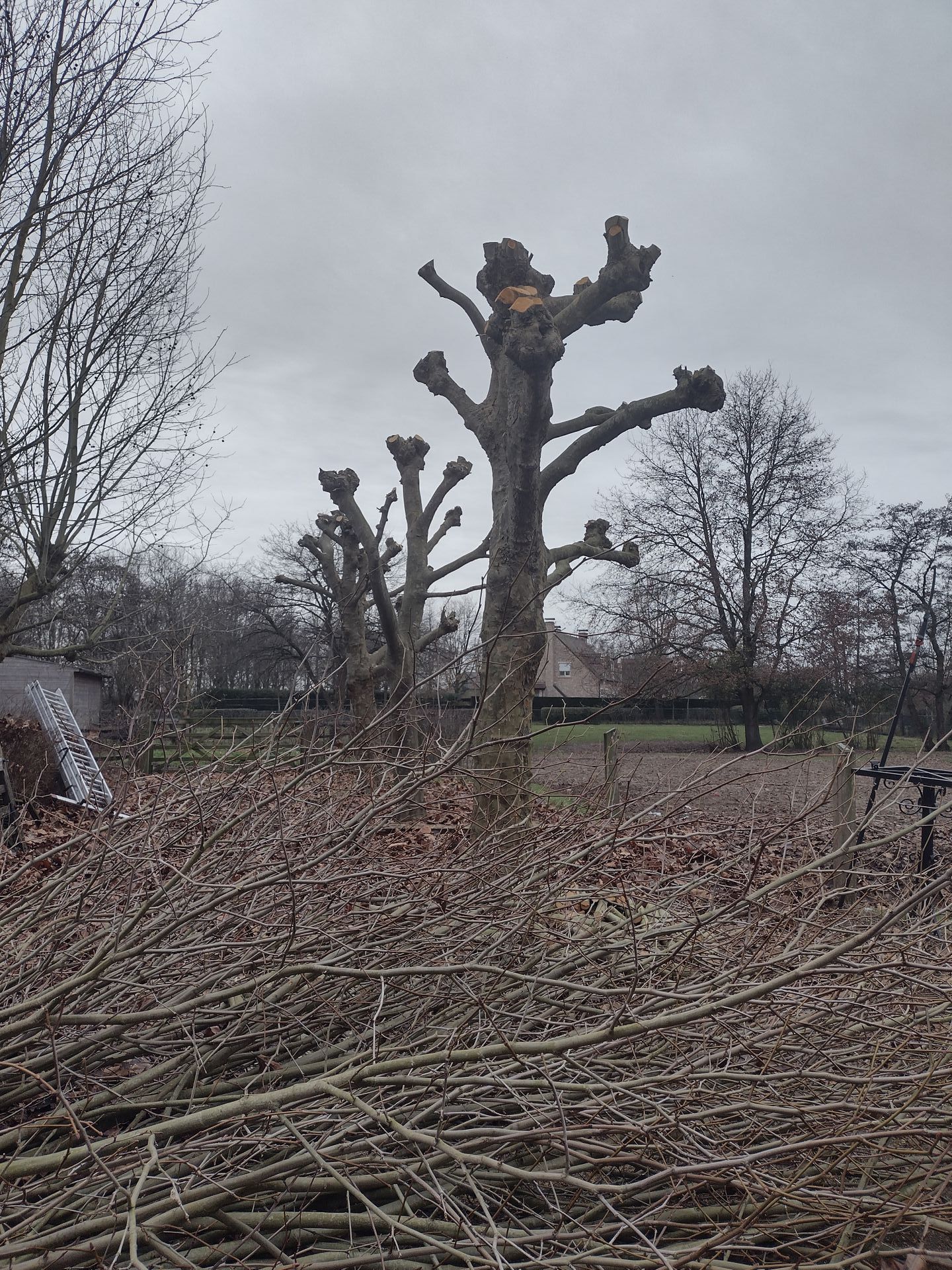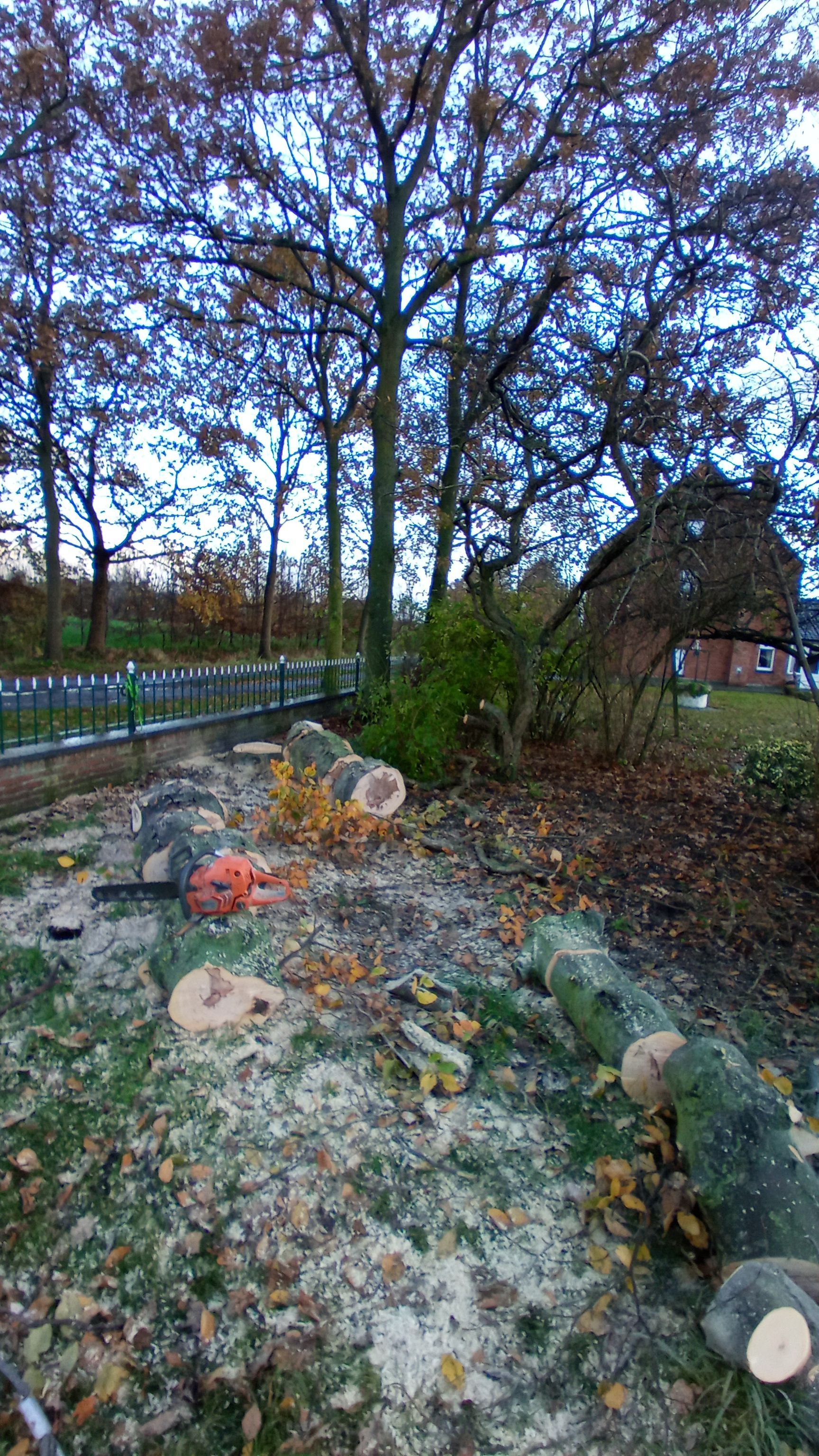 Voor het vellen van bomen, coniferen en grote struiken. We verhakselen of zagen alles in stukken. Aan u de keuze of we al het afval meenemen of achterlaten.